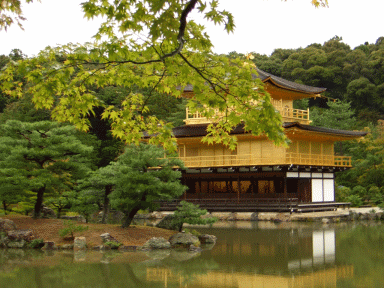 好不容易到了金閣寺,雨勢有較小了,一下車就看到許多穿著浴衣、金髮白膚的外國人在排隊買票,真佩服她們能夠在雨天打著傘、穿著和服和木屐趴趴走,我穿普通的衣鞋走路就快陣亡了。