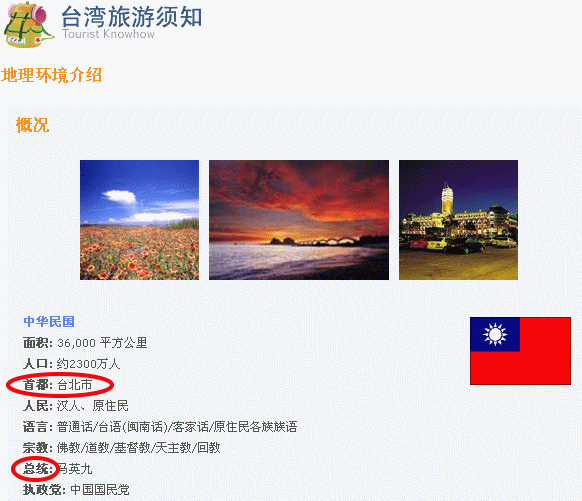 之前觀光局網頁簡體字版把國旗、國號、總統等國家象徵的圖樣或字樣統統拿掉,連首都台北市都變成了「最大都市」,當時鬧的沸沸揚揚,許多人都不能接受這種自我矮化的行為而極力抗議。包括我,也寫了封信分別寄到觀光局信箱和局長信箱,諷刺他們如果不敢寫首都為台北,那乾脆寫「南京」好了。